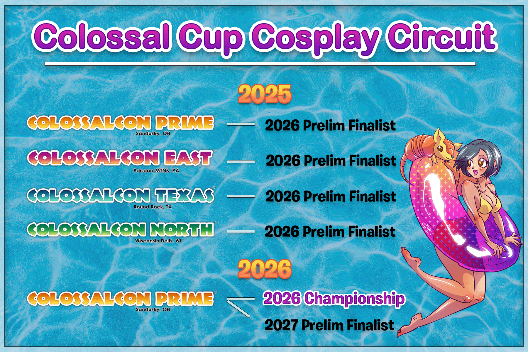 - You must be a registered attendee of the Colossalcon Event. Staff members are not eligible for the Circuit or any other cosplay event.