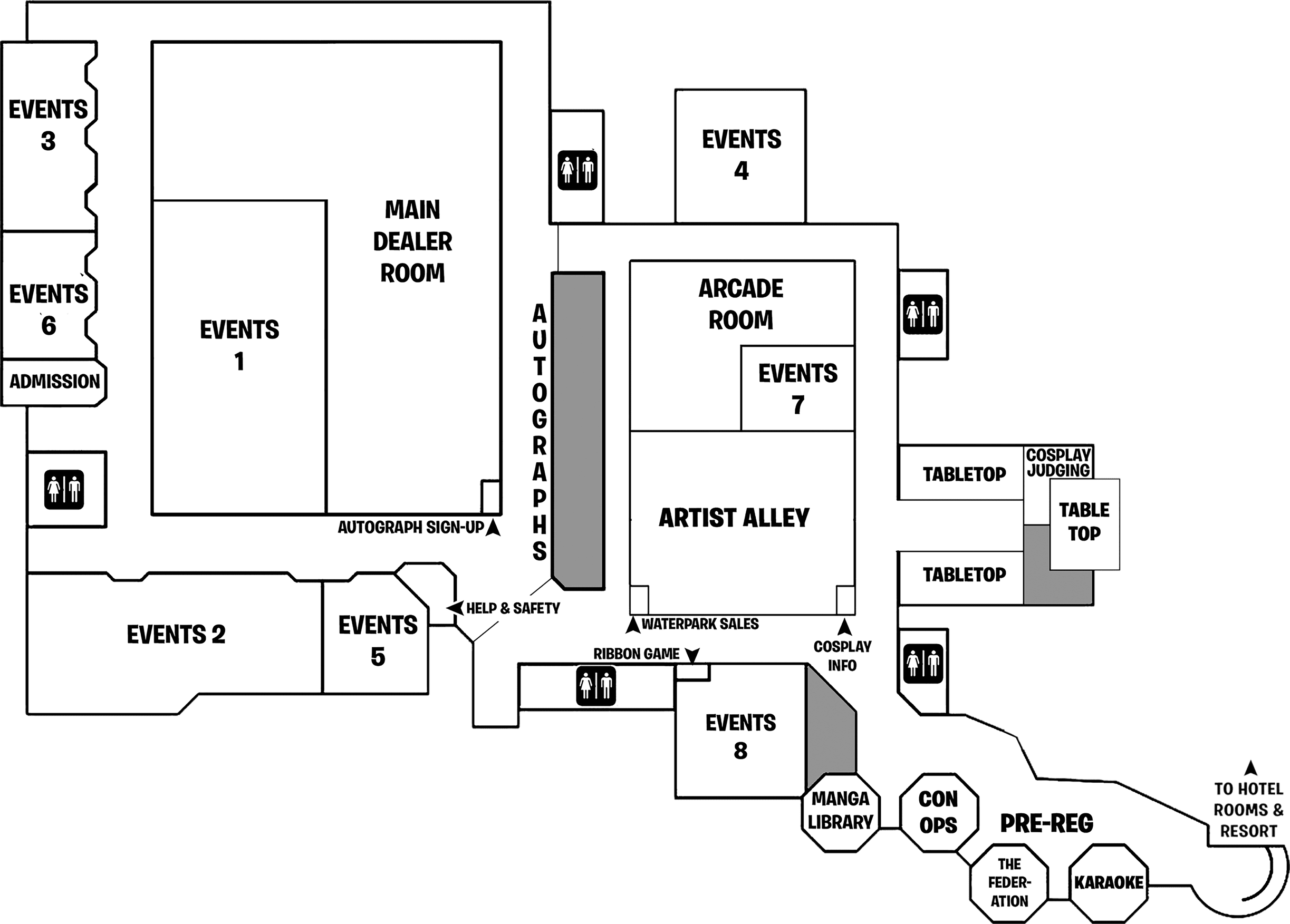Below are some maps that may be useful to navigate Colossalcon Prime. For more detailed property maps, check out the Kalahari property maps. Last year’s convention map is available as a reference for what to expect, but be sure to check back closer to the event for the updated version.